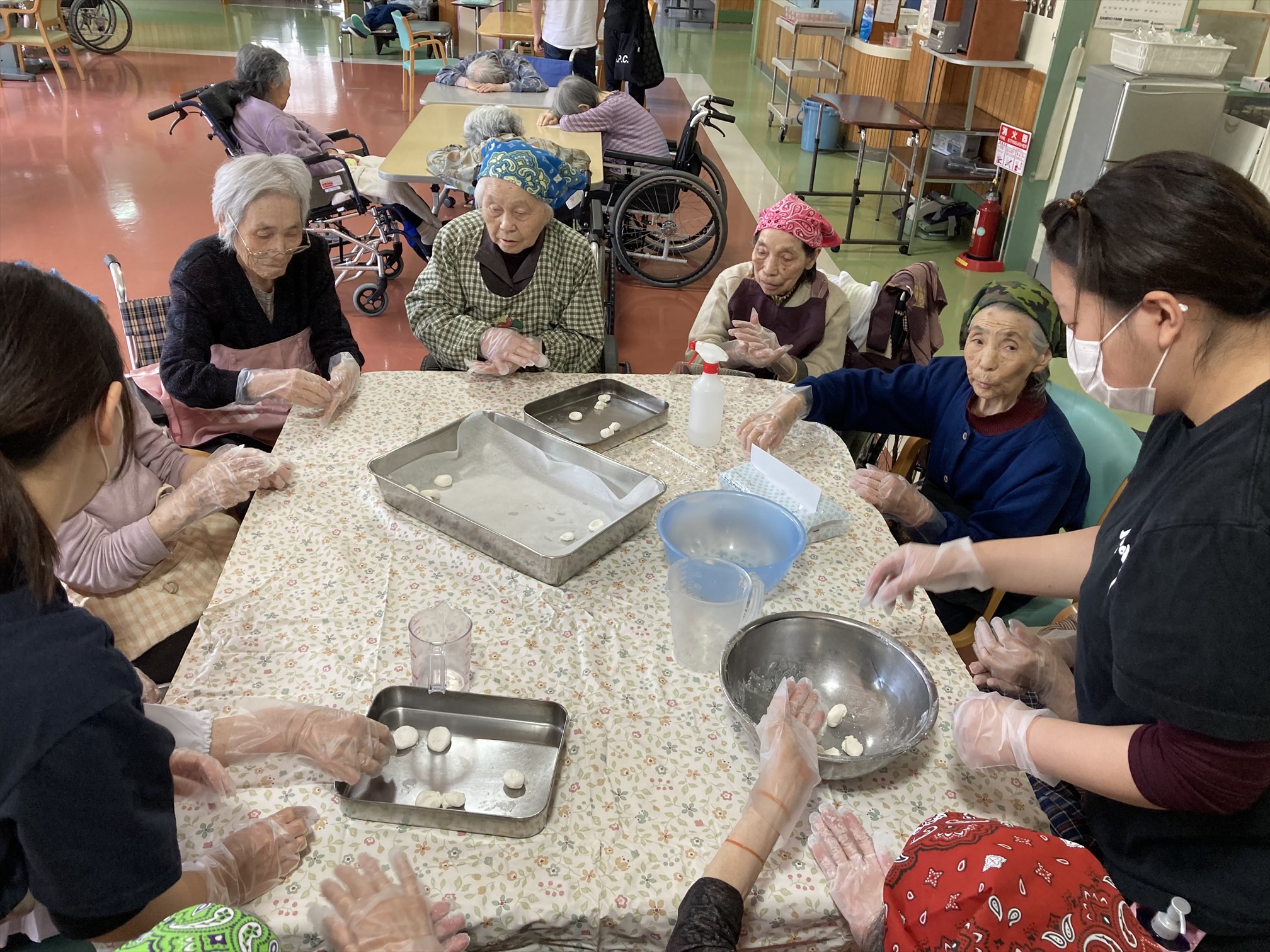 まずは午前中、栄養士と一緒に白玉だんご作り。