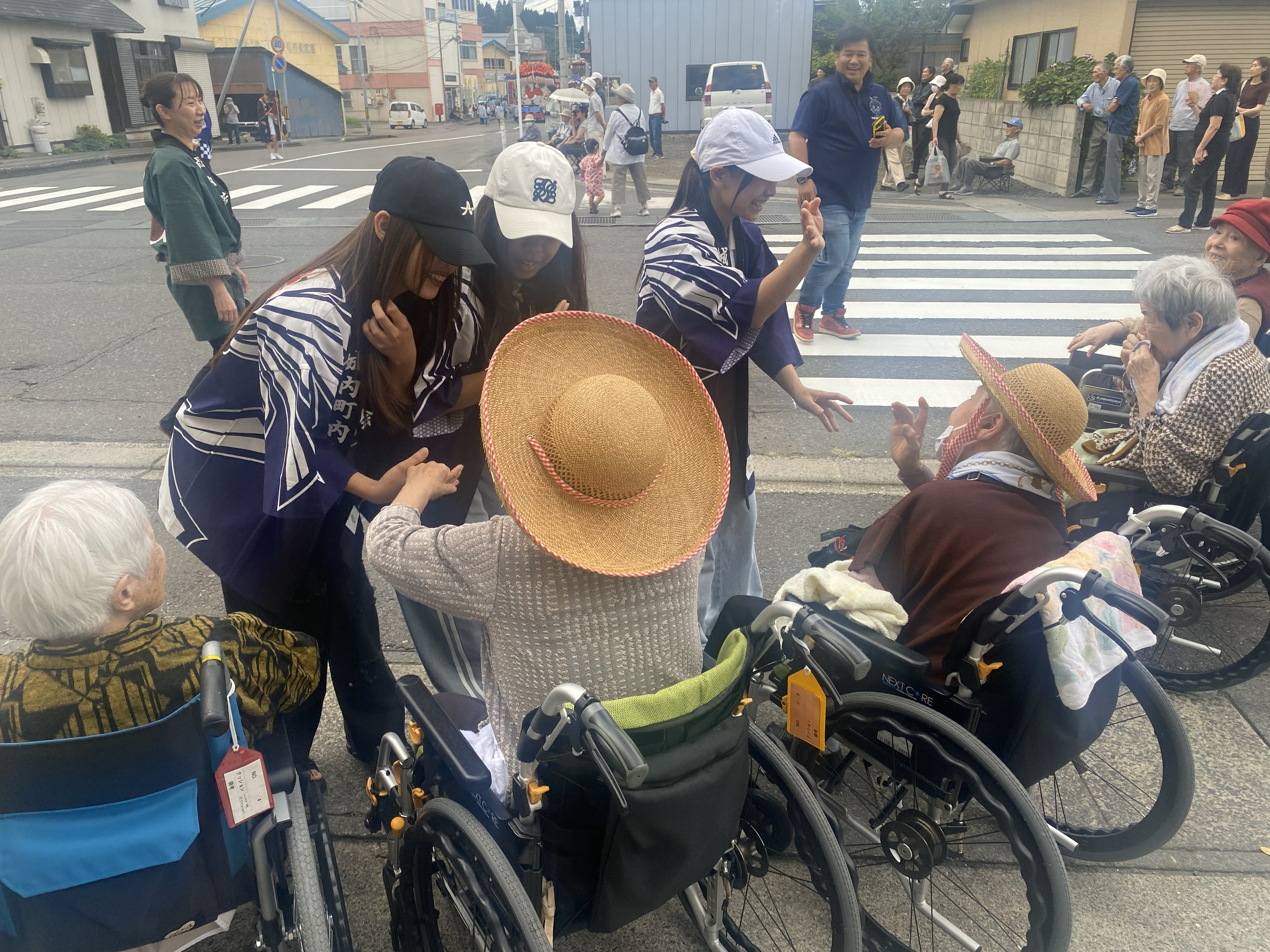 お祭りに参加している職員もおり、見学しているご利用者様たちの近くまで来てくれました。