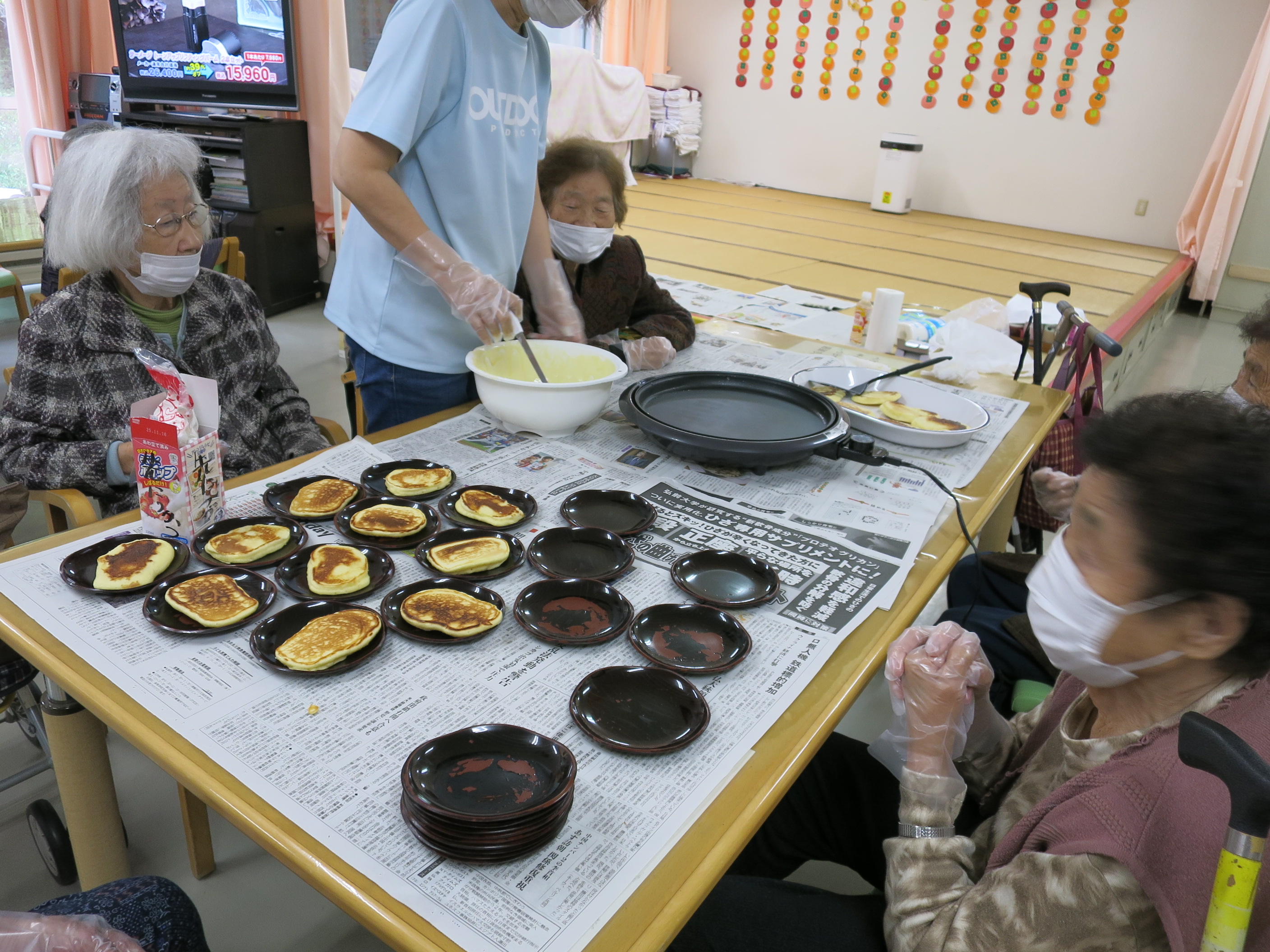 美土里会日記 おやつ作り@デイサービス 2026.02.15 デイサービスでは年に2回手作りおやつの日があります。 今回は手作りどら焼きですヾ(≧▽≦)ノ ホットプレートでどら焼きの皮になるホットケーキを焼き、丸めたあんこを乗せ、生クリームまでつけちゃいました♪ おたまで生地を流す人、生地をひっくり返す人、あんこを丸める人、それぞれができる役割をして、みんなで一緒に作りました。 出来上がりは最高!皆で「美味しい!」「もっと食べたい」などと言い合い、喜んでいました(*^_^*) 《 日記一覧へ 》 お問い合わせ 採用情報 よくある質問